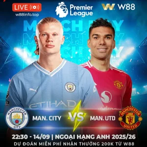 22:30 NGÀY 14/09 MAN CITY – MAN UTD Trận derby Manchester giữa Man City vs...