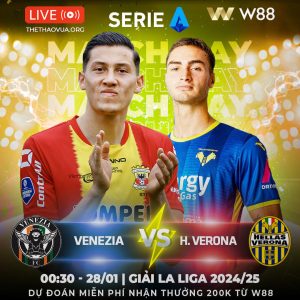 00:30 NGÀY 28/01 VENEZIA – VERONA Phong độ của Venezia và Verona là khá tương đồng...
