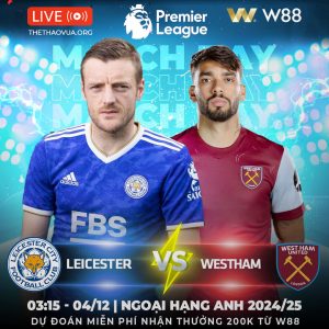 03:15 NGÀY 04/12 LEICESTER – WEST HAM Rạng sáng ngày 30/11 (giờ Việt Nam), trang...